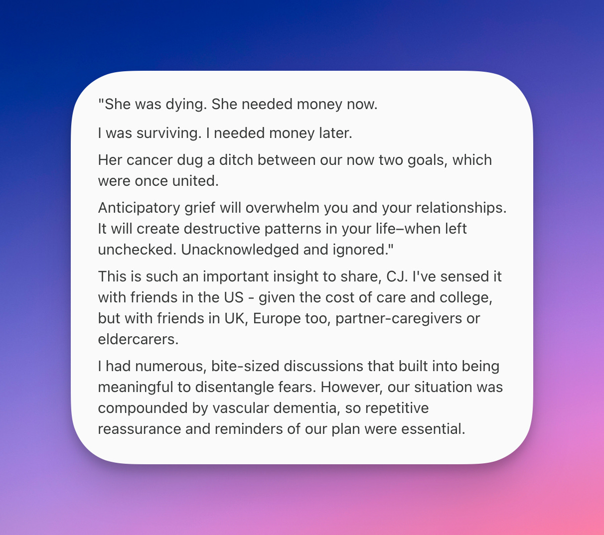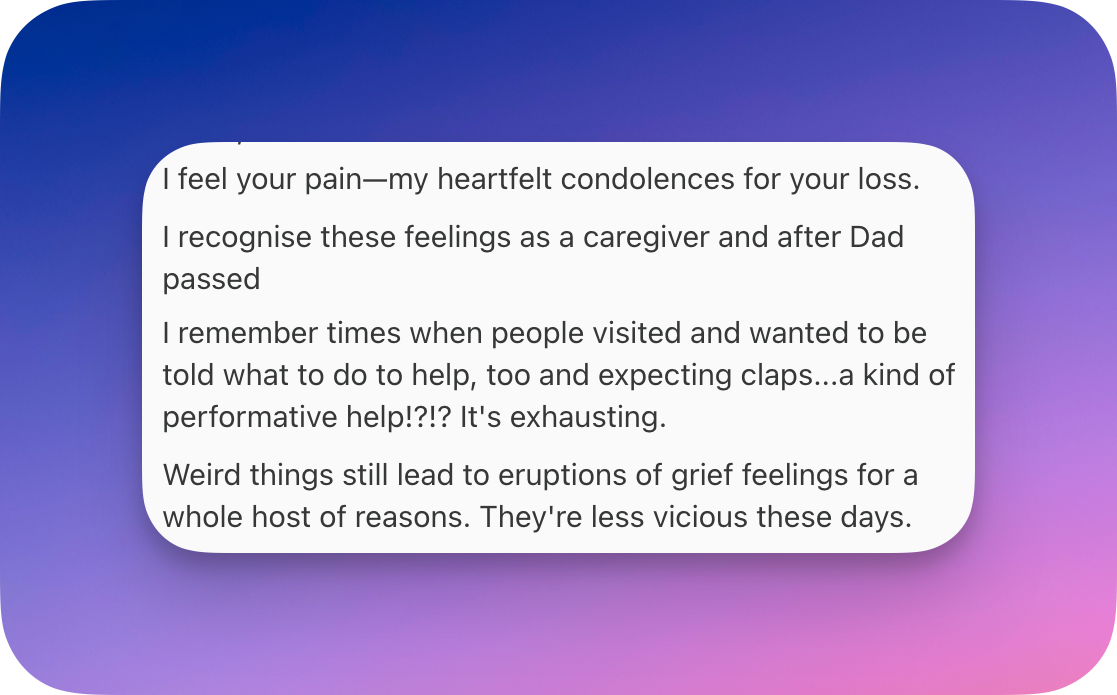 In 2023 I made the leap. I walked away from my 18-year career in tech to do this full-time. To write about grief, to coach people through their grief, to build resources that actually help instead of offering empty platitudes.